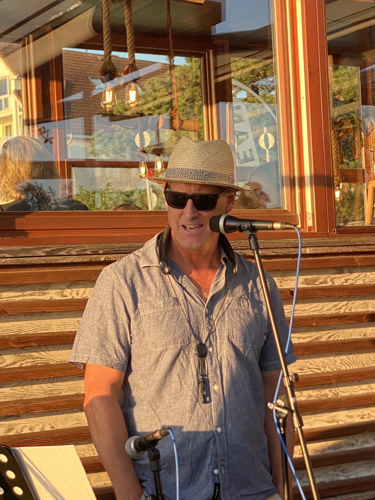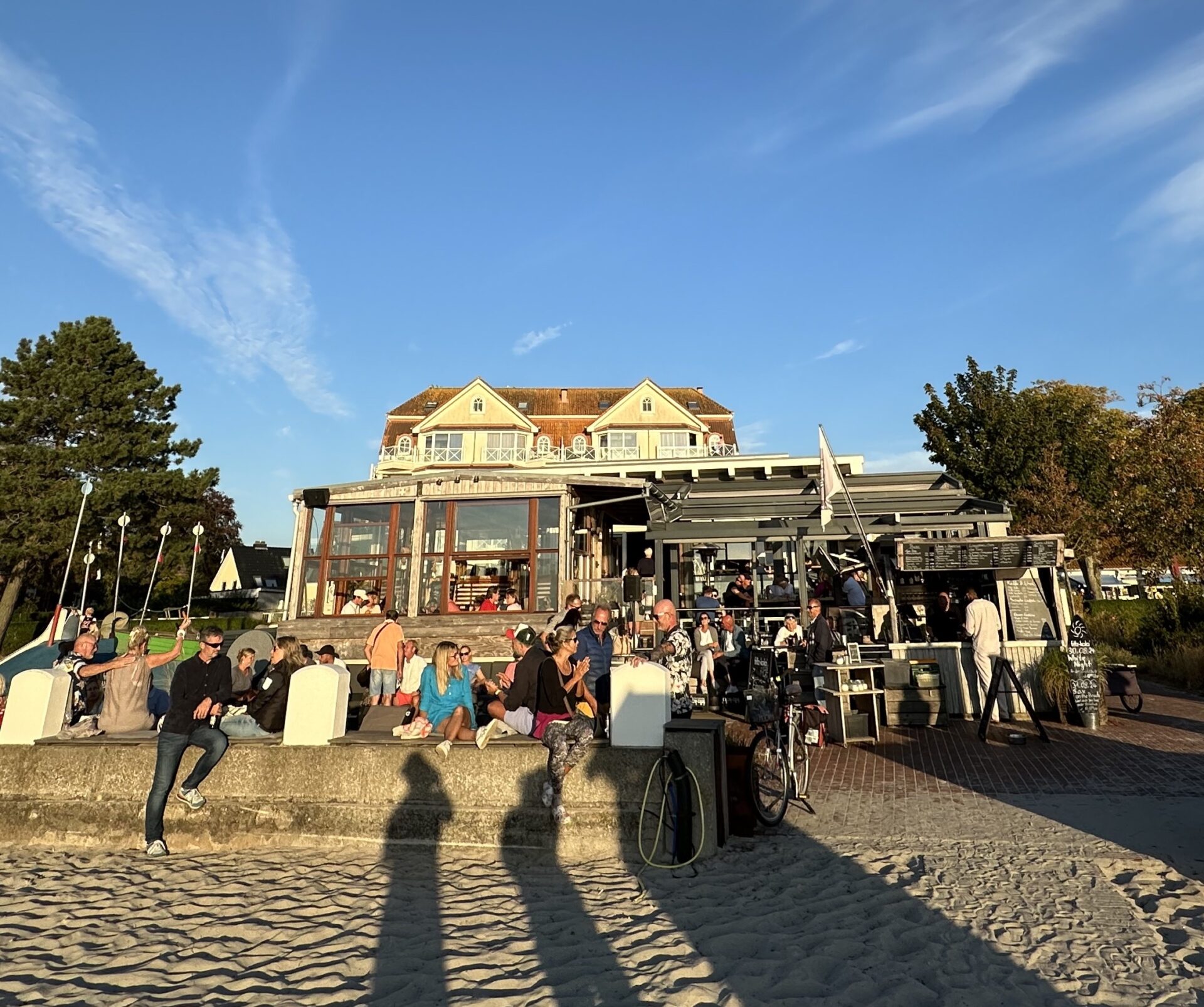 „Willkommen bei StrandGut Kulturmomente – Live-Musik auf unserer Terrasse unseres Restaurants Deichkind in St. Peter-Ording.