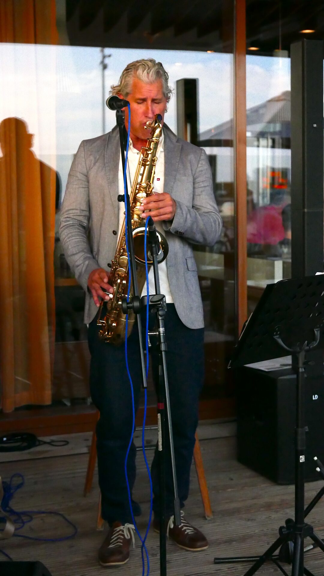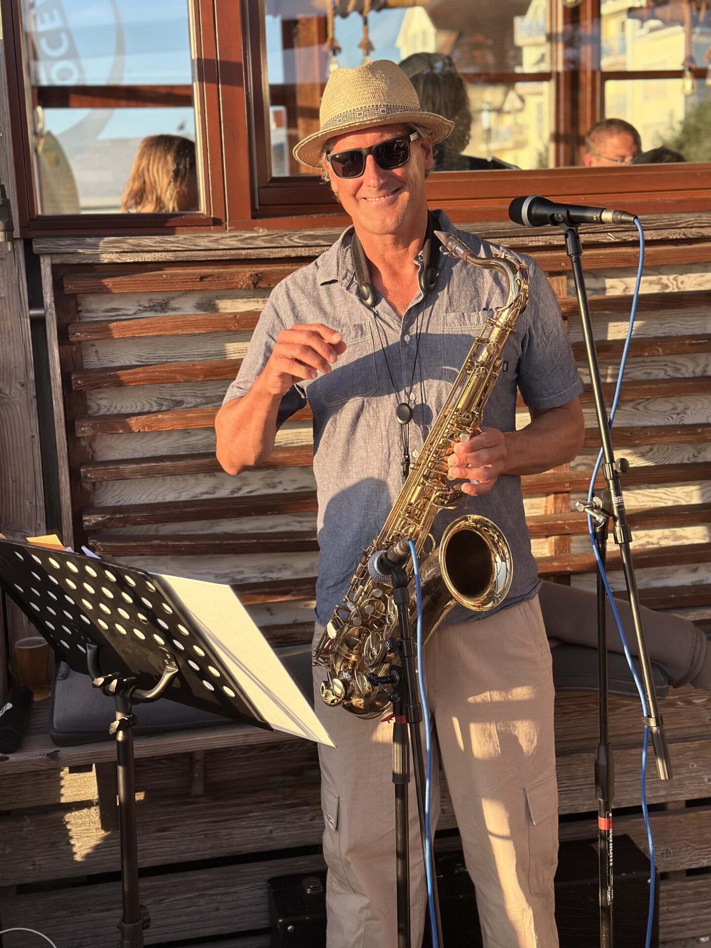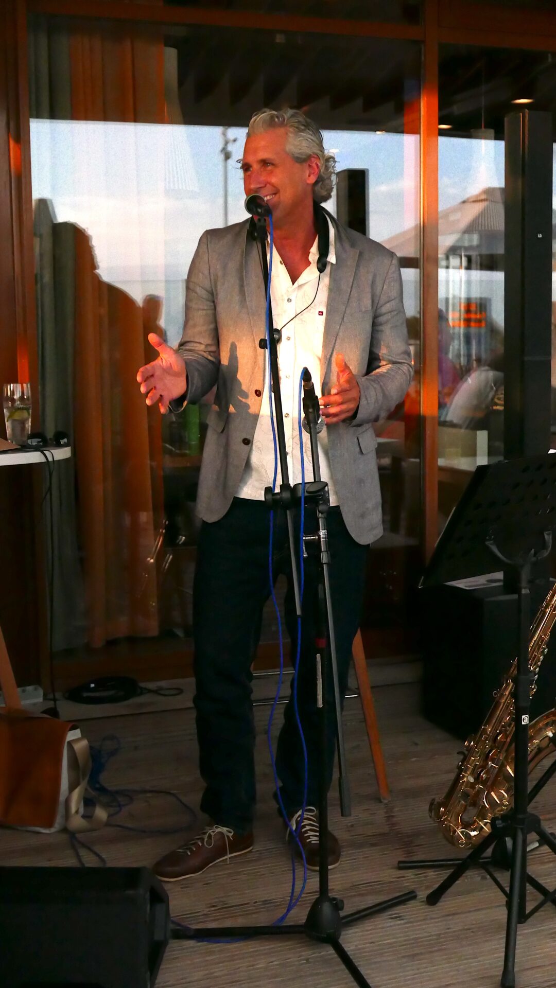 Sommer, Sonne, Saxophon: Genießt einen entspannten Abend auf unserer Terrasse mit dem Live-Programm „Sax on the Beach“ von Weert Kramer – Saxophonist, Sänger und Komponist. Wenn die Sonne über St. Peter-Ording langsam untergeht, mischt sich der lässige Sound von Weerts Saxophon unter die Gespräche der Gäste. Freuen Sie sich auf Jazz Classics, Funky Grooves und Dancehall. Ideal zum Abendessen oder auch zu dem ein oder anderen Cocktail. Weert Kramer sorgt mit seinem Soloprogramm für echtes Beach-Feeling mit Live-Charakter.“