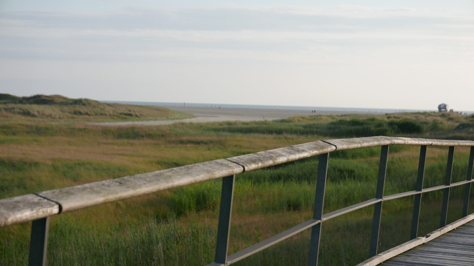 Wenn Du von der Kampener Anhöhe auf der Terrasse des Hotel Rungholt Richtung List schaust, kannst Du die Nordsee- und Wattseite der Insel Sylt sehen.